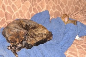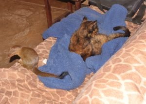 In the meantime Squiggle mongoose decided she wanted to be on the web again so here she is with Tortie cat