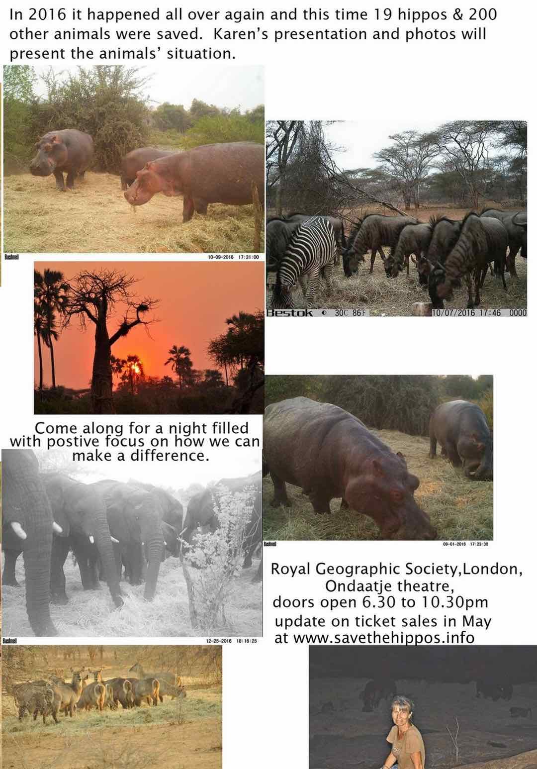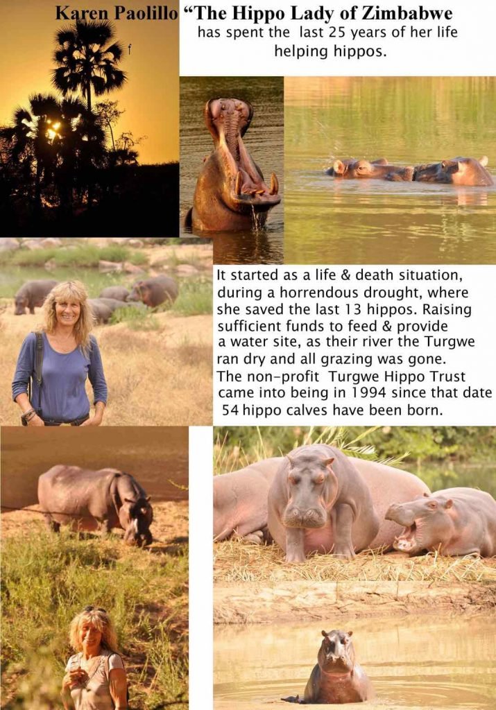 Karen Paolillo “The Hippo Lady of Zimbabwe” will be giving a presentation and a slide show in London at the Royal Geographic Society, Ondaatje Theatre on 21st November, 2017. Door open at 6.30 – 10.30 pm. Talk begins at 7.30 pm. There will be a cash bar available one hour before the talk and one hour afterwards.