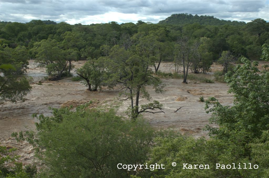 Dramatic footage of the Turgwe river in flood, with dams broken and causeways swept away.