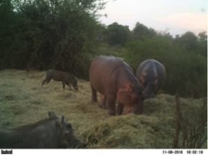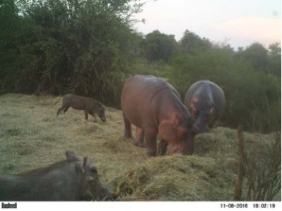With the river in flood the hippos will move from their normal pools and not come along to the feeding stations. I will be able to stop feeding now after a year of helping these hippos and other wild animals. 2016 has been a year of huge challenge, a great deal of hard physical work but with the best results coming from all the hippos supporters. You have enabled the Turgwe Hippo Trust to save the lives of 19 hippos and over 200 other wild animals. The donations, adoptions, sales of merchandise as well as tremendous help and support from Laura Simpson of the Harmony Fund USA, thanks also to Adventure Aquarium USA, Big Yellow UK, Meryl Harrison and the Aware Trust UK, along with so many individuals, have made it possible to supply hay, game nuts, survival meal, transport, cabbages, and keep all these animals alive during the second harshest drought since 1992. The Trust has fed the following species: Hippos, elephants, buffalo, eland, wildebeest, waterbuck, bushbuck, grysbok, kudu, zebra, bush pig, warthog, baboons, Vervet monkeys, civet, scrub hare, porcupine. Predators like lion and hyena benefited from eating the odd animal we were helping, but again that is a natural survival code.