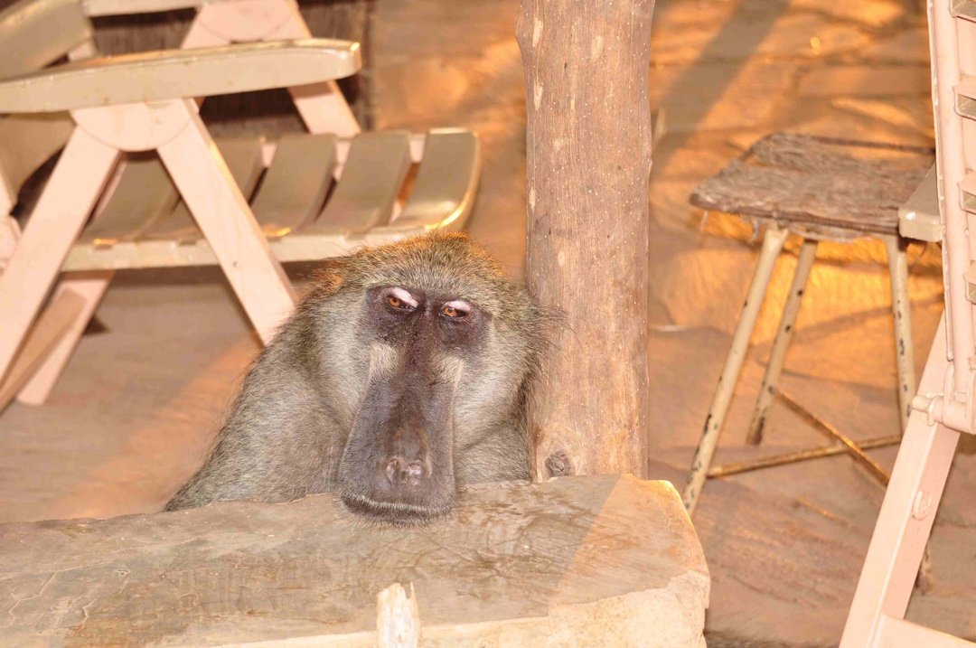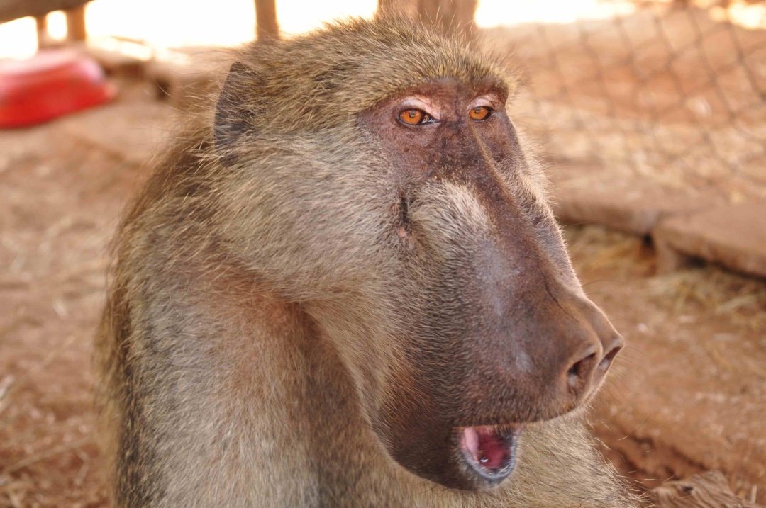 Joe, a massive, elderly male baboon who allowed two humans into his private space. Joe was part of the Hippo Haven wild troop and of them all he had the nicest character. He was the largest and would often be seen with a huge entourage of young juveniles under his protection. He was like the adored grandfather; his special friend was Yogi the baboon whose life we saved. See earlier blog, Yogi was carrying a poachers’ snare tightly wound around his stomach, which would have killed him, had we not managed to remove it.