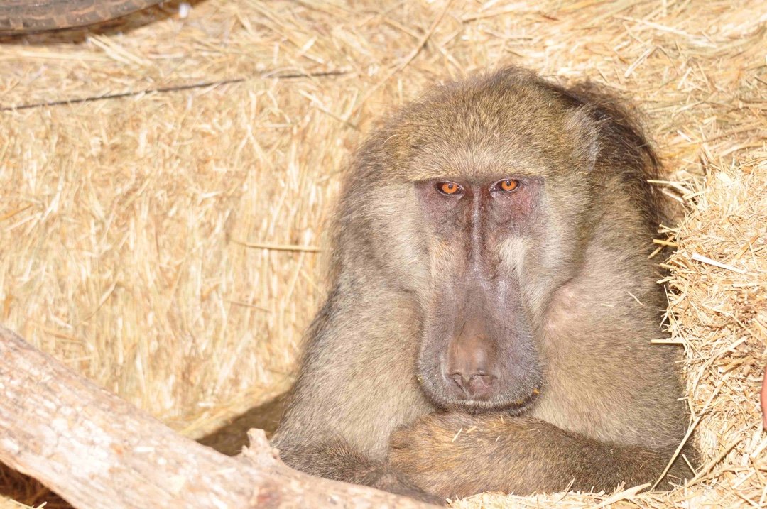 Yet he was still stiff and then his legs suddenly lost all feeling. He had movement in his arms but nothing in his legs. We began a course of massage treatment, massaging his legs every day using turmeric paste as an anti-inflamatory. He accepted two humans rubbing his legs, this incredible baboon, as he knew we were trying so hard to save him. During all of these weeks Joe would not give up: he would lip smack at the female baboons, call them in his very deep voice, and generally be alert and look around at all times.
