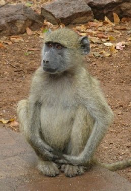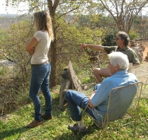 We were able to see both from the “roots up” and not from a tourist bus. Karen and JR live with their cats in a house they built themselves and share the outside with a troop of baboons and vervet monkeys. At first I found the baboons rather daunting. Although I was forewarned that they lived around the house, I had not realised how big they are! But I soon got used to having to ask them to move in order to open the door to get in and out of the house and sitting out on the patio chairs with baboons and monkeys became quite normal. It was amazing to be able to be so close to wild animals, for although Karen and Jean give them titbits they are still wild. I was even lucky enough to be able to stroke Hazel, one of the vervet monkeys who had a favourite perch sitting on a dead tree just outside their double doors. In fact I got so used to them that I forgot what opportunists they are and neglected to guard our lunch when we left for our return drive to Harare. As I walked to the car a baboon appeared from nowhere, our sandwiches were whisked from my arms and the thief vanished around the house with the whole troop running gleefully after him.