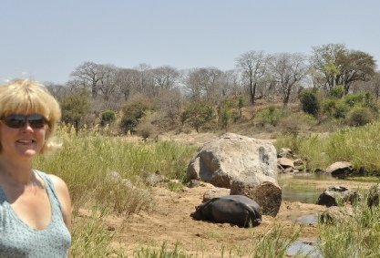 When Karen first came to Zimbabwe she trained to be a fully qualified safari guide (which was rare for a woman then) and so, because of her knowledge, was able to take us safely around the bush and get us close the animals and in particular her hippos. I was honoured to be able to stand very close to one of her hippos (Surprise) whilst she was lying on the river bank. Karen told me that no one had been as close before except for her!