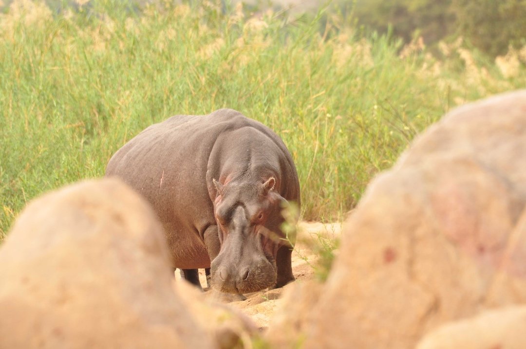 You do not need to shoot at a wild animal in defense; it is much more sensible to remove yourself from their immediate vicinity and with a hippo it is easy you just climb up a tree or a rock and you are OK.